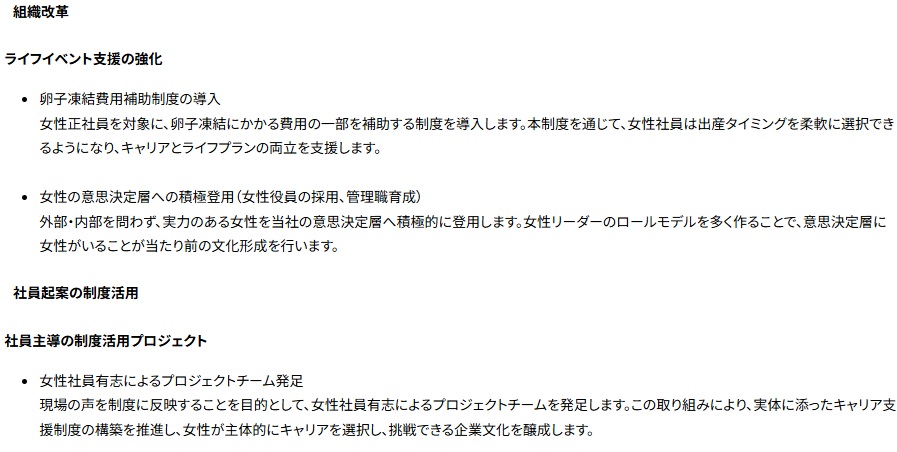 出産のタイミングを柔軟に選択してもらうことで、意思決定層へ積極登用。また女性社員有志で新たに、プロジェクトチームも発足させる。