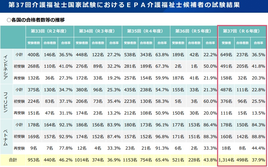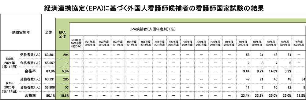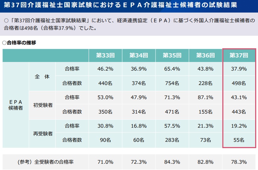 EPA(経済連携協定)に基づく外国人介護福祉士の合格率低下