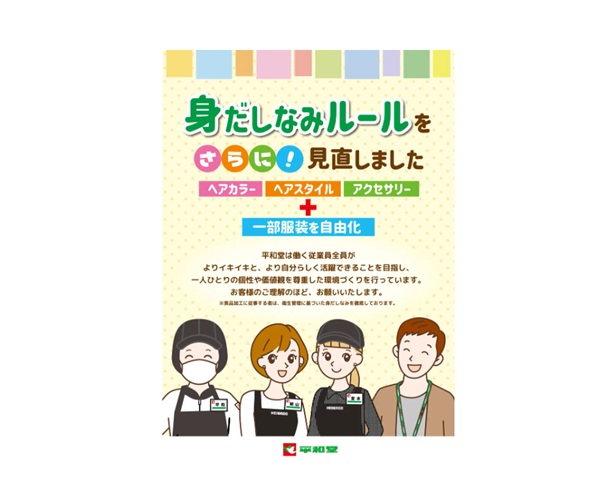 総合スーパーを展開する平和堂(滋賀県彦根市)はこのほど、昨年10月に続き身だしなみルールをさらに見直しした。