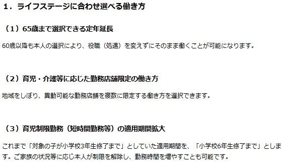 スーパー事業のサミット(東京都杉並区)は4月から、社員のライフ&ワーク支援体制を拡充した。地域を絞り込み、異動可能な勤務店舗を複数に限定することを働き方の選択肢として整備。さらに短時間で働ける育児制限勤務の適用範囲を、対象の子が小学校3年生修了までから、6年生修了までへと延長した。