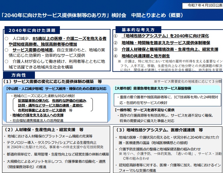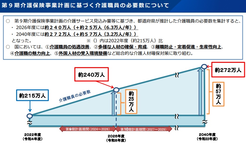 都道府県や公的機関、養成施設、事業者、などの役割を明確にした上で、若者・高齢者・未経験者などを確保する具体的な方向性を今秋にもまとめる。