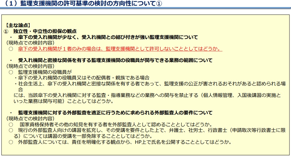 23条からは、監理支援機関について規定。23条1項では、監理支援事業を行おうとする者が、主務大臣の許可を受けなければならないと定めた。
