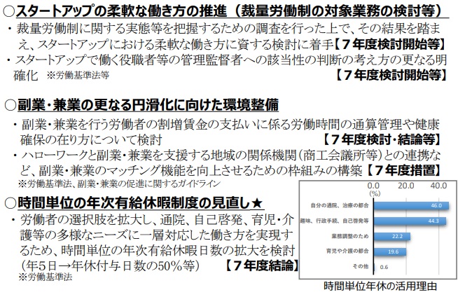 規制改革推進に関する答申では、スタートアップに関して柔軟な働き方の推進のほか、管理監督職の該当性の判断基準の明確化を要求。また副業・兼業について割増賃金算定時の労働時間の通算を不要とすること、時間単位年次有給休暇の拡充も求めており、労働政策審議会労働条件分科会での労基法の見直しの議論にどこまで影響を及ぼすか注目を集める。
