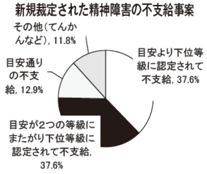 抽出した新規裁定1千件で、130件が非該当。不支給率は前年度比4.6㌽増の13.0%で、最高値を更新した。