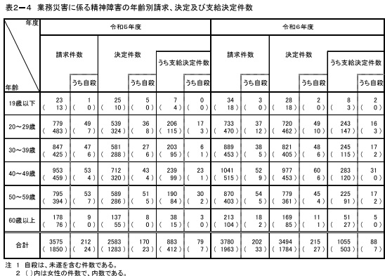 精神労災は請求が前年度比205件増の3780件、認定が同172件増の1055件とともに大幅増を記録。認定は男性が同81件増の552件、女性が同91件増の503件で、内数の未遂を含む自殺は順に同9件増の81件、横ばいの7件を数えた。