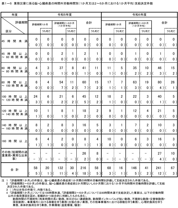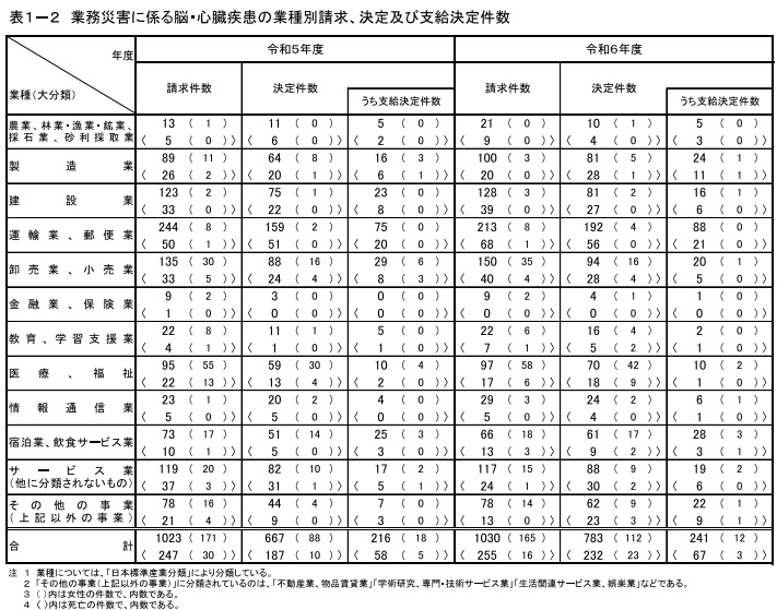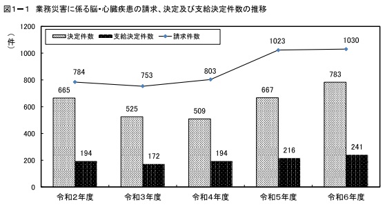 脳・心臓疾患の労災についても、請求が同7件増の1030件、認定が同25件増の241件にともに増加した。認定は男性が同31件増の229件、女性が同6件減の12件とほぼ男性が占めている。