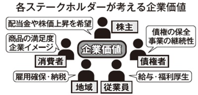 経済産業省の定義によれば、企業価値を主に価格の問題として捉えています。この点、上場企業であれば株価として可視化されますが、中小企業ではM&Aにおける承継時や融資時などの特定の局面でしか表面化されません。また実際には、企業価値を考察する場面では多様なステークホルダーが関与しています。当該ステークホルダーには多様な思惑があり、単純に金額で測れるものでもありません。