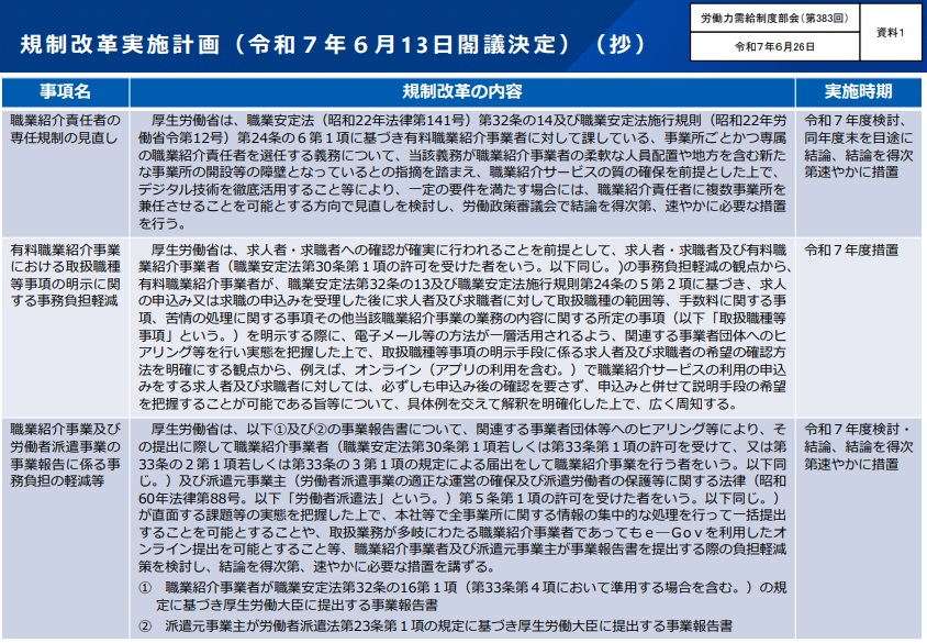 職業紹介責任者の選任規制見直し検討 規制改革実施計画受け厚労省要請