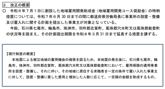 地域雇用開発助成金「能登地震特例」 利用増見込み来年3月末まで延長