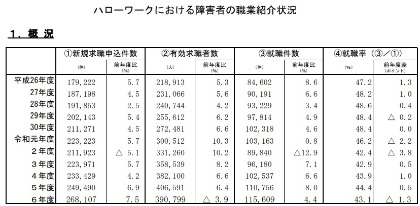 厚生労働省はこのほど、2025年度にハローワークを通じた障害者の就職が前年度比4.4%増の11万5609件と最多を記録したと発表した。