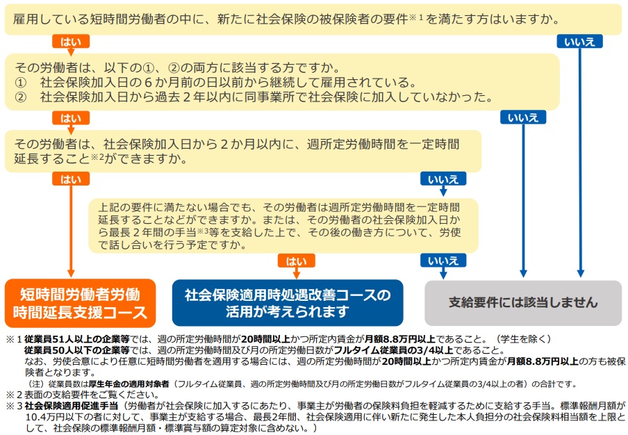 助成対象となるのは、6カ月以上雇用する短時間労働者の年収増加に取り組み、実際に社会保険に加入させた事業主。