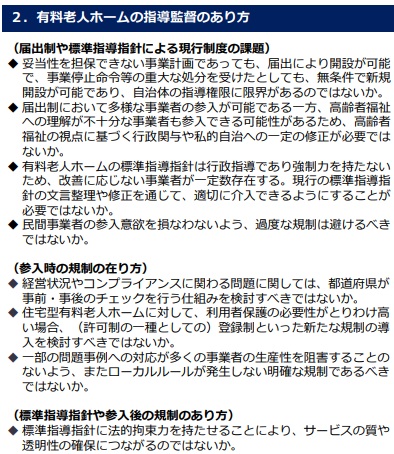厚生労働省は有料老人ホームの指導監督を強化する方針だ。望ましいサービス提供のあり方に関する検討会で、見直しを求める意見が大勢を占める。