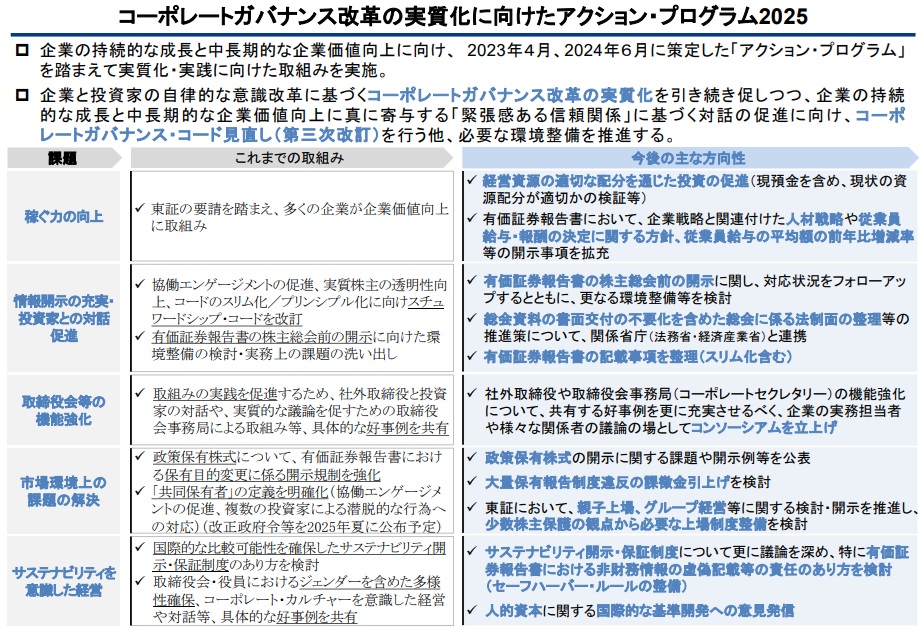 今回金融庁が発表した「コーポレートガバナンス改革の実質化に向けたアクション・プログラム2025」では、上場企業が年度ごとに提出する有報において給与増減率の開示を要請。「人材戦略や従業員給与・報酬の決定に関する方針」の開示もあわせて求めた。
