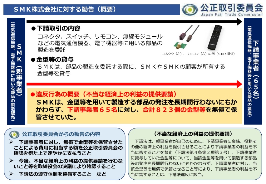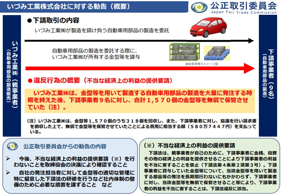 長期金型無償保管の下請法違反で2社へ勧告 公取委