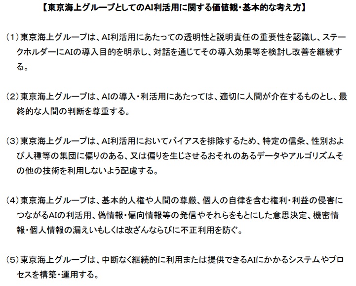 東京海上ホールディングス(東京都千代田区)はこのほど、制定したAIガバナンスに関する基本方針の考え方を公表した。