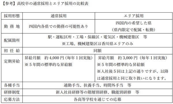 JR四国(香川県高松市)はこのほど、来年度以降の高校新卒者を対象にエリア採用制度を導入すると発表した。