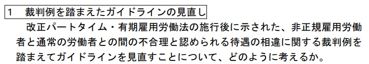 非正規労働者の待遇改善に向けた労使協議で活用されるなど、いわゆる同一労働同一賃金ガイドラインの存在感が増している。このほど労働政策審議会の部会で見直しの議論が始まり、裁判例を反映するなど大幅に拡充する方向で議論は集約されそうだ。
