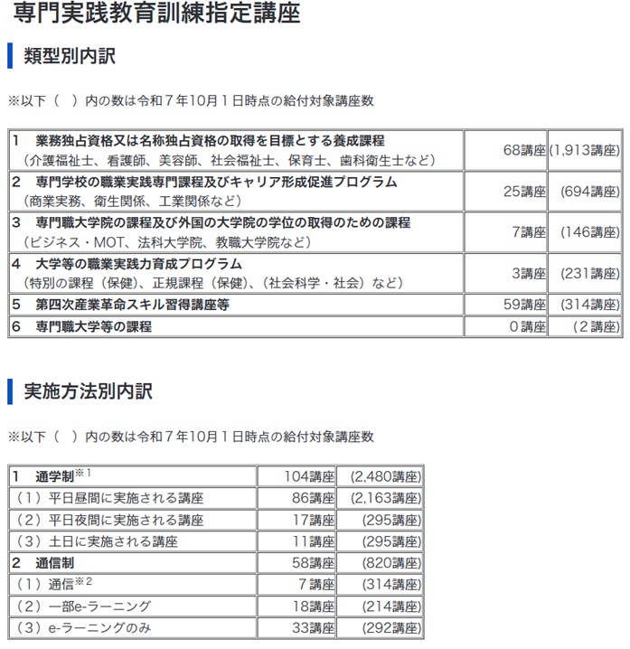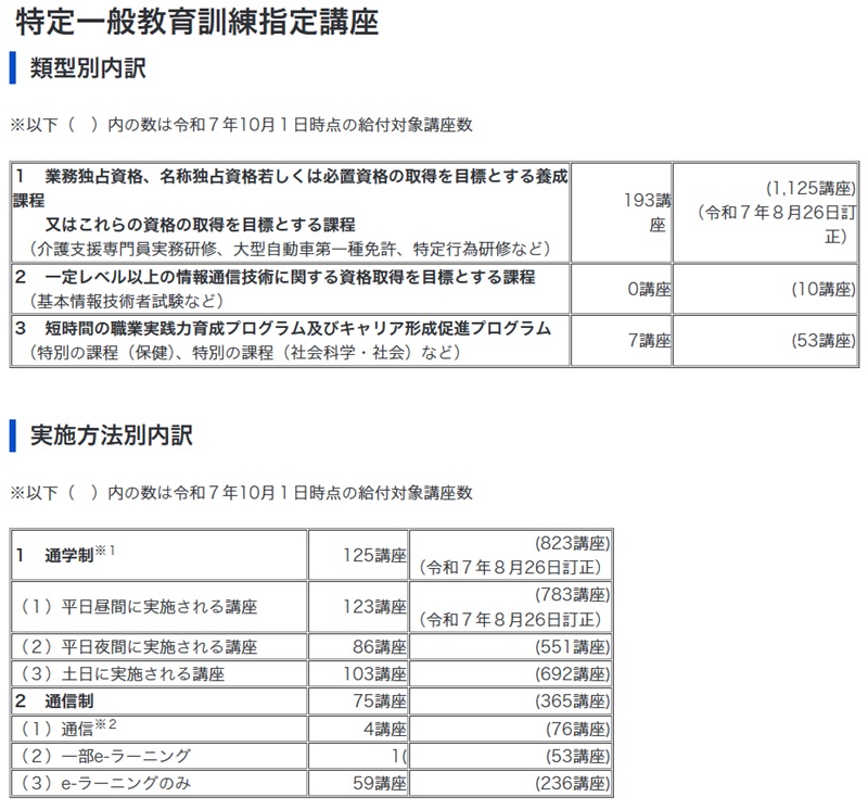 教育訓練給付金の対象講座 eラーニングの通信制が増加