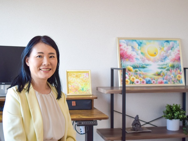 東京・立川の米澤裕美さんの仕事場には、AIが描いた絵が飾られている。長時間労働と子育ての傍ら、試験勉強をして2014年に社労士資格を取得。「現場を想像できる会社員の経験」が社労士としての強みと胸を張る。24年には結婚相談所を併設。人事労務担当者と結婚希望者の感情に寄り添い、サポートする米澤さんを訪ねた。