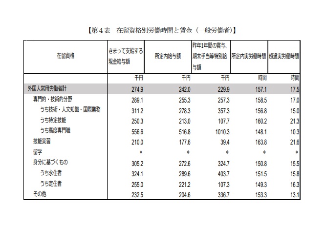 在留資格別にみると、「身分に基づくもの」が同2900円増の30万5200円、「専門的・技術的分野」が同3200円増の28万9100円、「技能実習」が同5900円増の21万0000円といずれも増加。特に専門的・技術的分野のうちの「特定技能」が同1万7700円増の25万300円と、増加幅が大きくなっている。