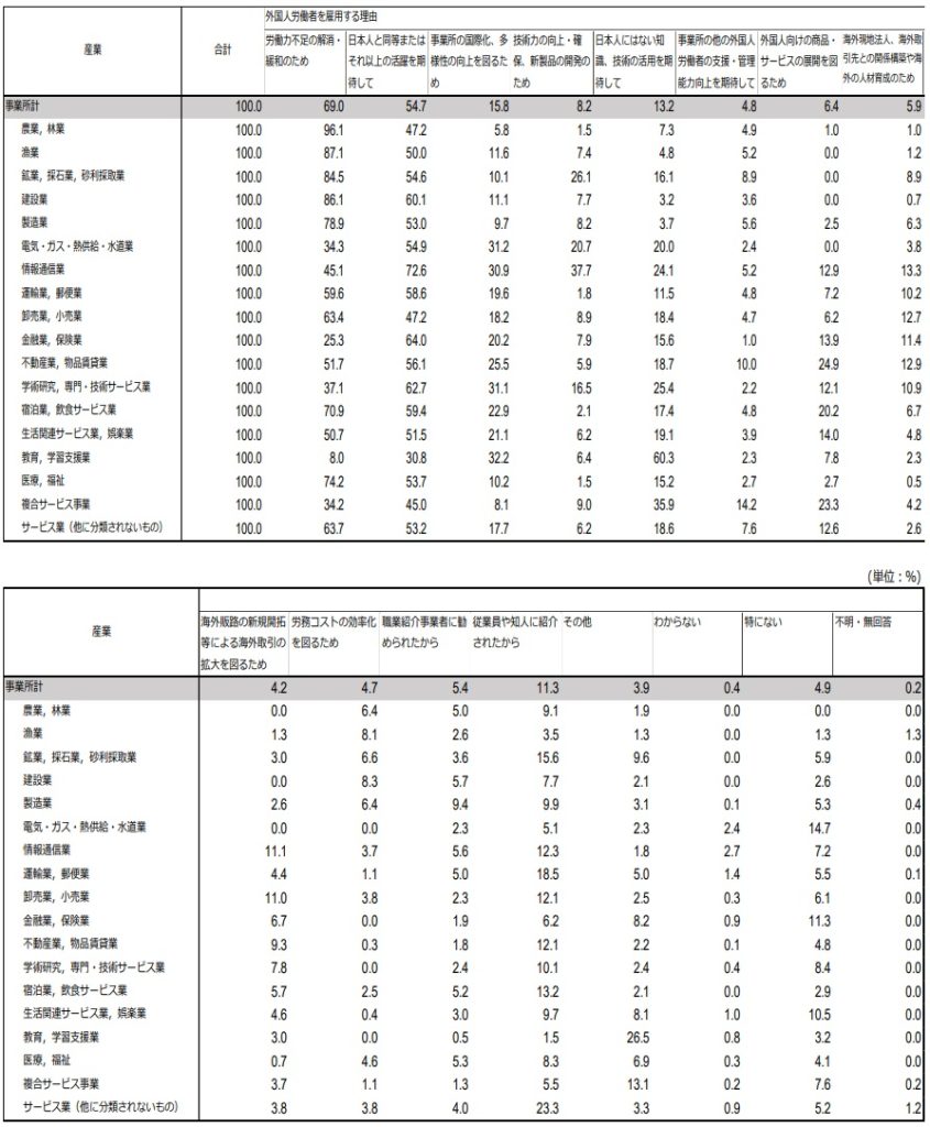 外国人を雇用する理由は「労働力不足の解消・緩和のため」が引き続き最も多く、同4.2㌽増の69.0%へ上昇。日本語能力不足によるコミュニケーションなど雇用上の課題は多いが、日本人労働者を雇用できない企業間の獲得競争の激化で、外国人労働者の給与が増加している可能性が読みとれる。
