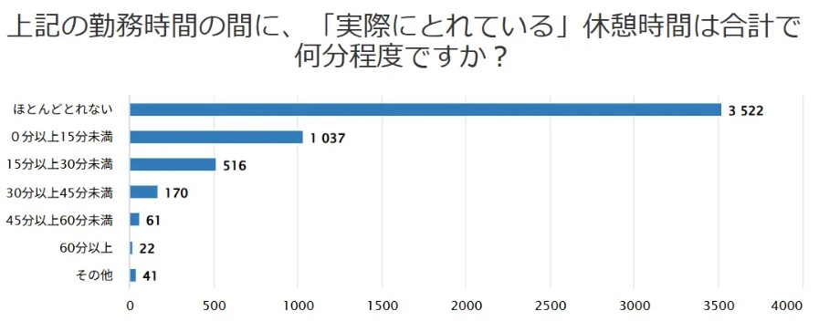 小学館の「みんなの教育技術」が現役教員5千人超から回答を得た調査で、65.6%と全体の3分の2が「休憩時間がほとんどとれない」ことがわかった。一方、45分以上確保できている割合は1.5%にとどまる。