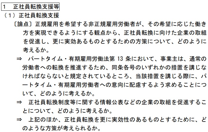 同一労働同一賃金部会で正社員転換支援の強化を検討 3つの転換措置の履行に配慮義務も