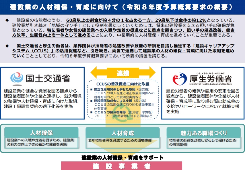 国交・厚労予算で建設業支援 CCUS活用、入職つなぐ対象絞込み