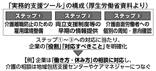 相談室 Q&Aご存知ですか 【ご存じですか】就業継続をゴールと位置づけ 介護両立を「ツール」で実務的に支援 2025年10月20日 9 FacebookTwitter 厚生労働省は労働者の介護両立支援に向け、企業の役割と対応をまとめた実務的支援ツールを公表した。社員の就業継続を両立支援のゴールと位置づけ、4月から事業主の義務となった「雇用環境の整備」「介護直面前の早期の情報提供」「介護申出時の個別周知・意向確認」の3ステップへの心構えや対応などについてまとめている(図)。 この情報へのアクセスはメンバーに限定されています。ログインしてください。メンバー登録は下記リンクをクリックしてください。既存ユーザのログインユーザー名またはメールアドレスパスワード数字で答えを入力してください:20 − 6 = ログイン状態を保存する パスワードを忘れた場合 パスワードリセットはじめての方はこちら 新規ユーザー登録