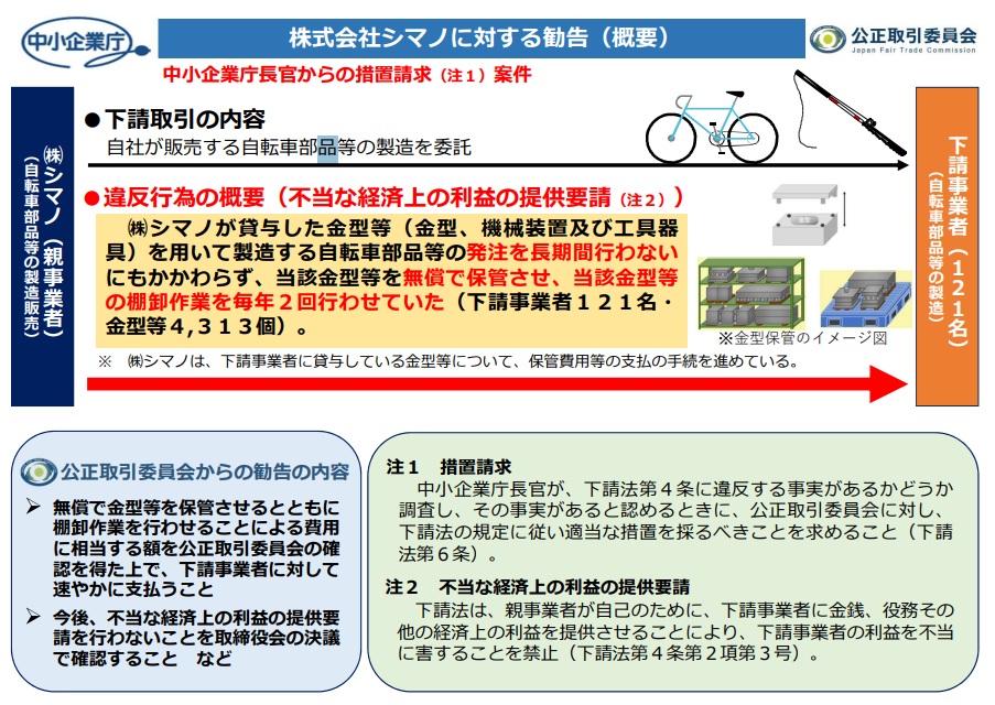 下請法違反2社に是正勧告 金型保管と代金減額で公取委