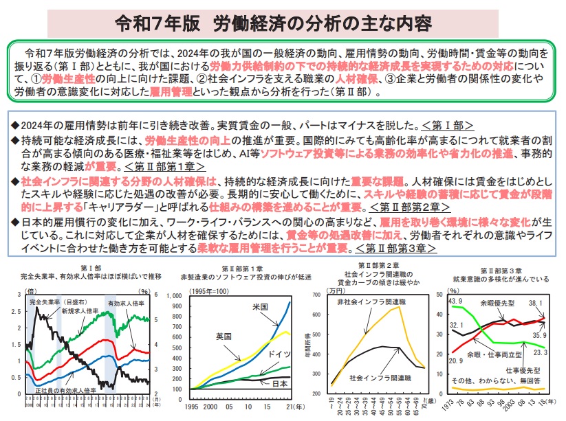 厚生労働省はこのほど、「労働力供給制約の下での持続的な経済成長に向けて」をテーマにした2025年版の労働経済白書を公表した。