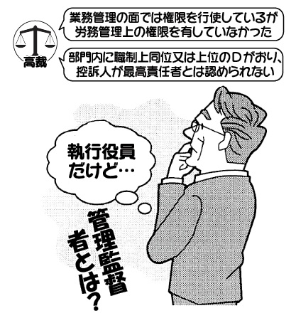 執行役員の管理監督者性を原審が肯定したのは前号の通りです。労働者が控訴した本判決は経営者と一体的な立場たる管理監督者としての「権限」についてさらに踏み込み、労務管理上の重要な役割を与えられておらず、部門全体の統括者とは評価できないと管理監督者性を否定しています。
