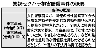 今回取り上げるのは警視セクハラ損害賠償事件(東京高判令和5年9月7日)である。女性警察官Xが、職場の同僚である男性警察官Yから、執務室や歓送迎会などの場で卑猥な言動や性差別的な言動を繰り返されるセクハラを受けたことにより、人格権を侵害され精神的損害を被ったと主張し、Y個人に損害賠償などを求めて提訴した。