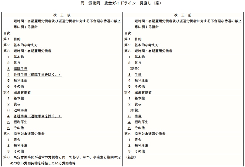 労働政策審議会の部会に、このほど厚生労働省が同一指針の見直し案を提示。2020年4月の改正法施行前後に、最高裁などが判示した待遇ごとの考え方、性質・目的などを反映する。