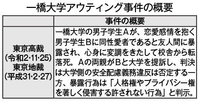 なお、18年4月、大学の所在地である国立市は、全国で初めて「アウティング禁止」を盛り込んだ条例を施行した。
