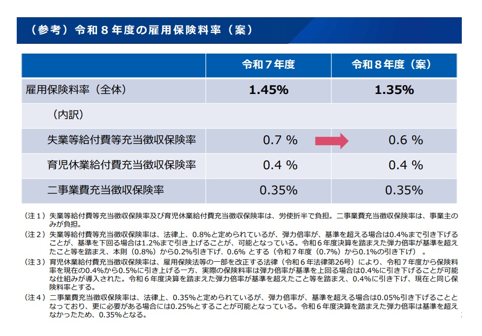 労働政策審議会雇用保険部会はこのほど、2026年度に雇用保険料率を引き下げる厚生労働省の提案を了承した。