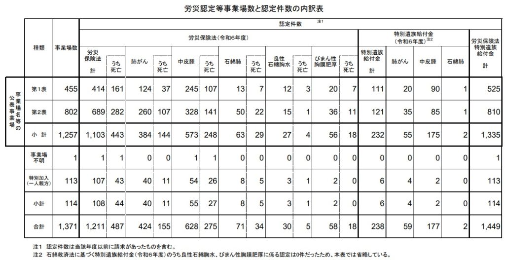 厚生労働省はこのほど、2024年度に石綿ばく露作業で労災認定などを受けた事業場情報を公表した。