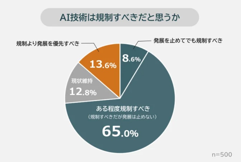 人材派遣のR&Gの調査で、男女500人のうちの73.6%がAI技術を「規制すべき」と回答した。