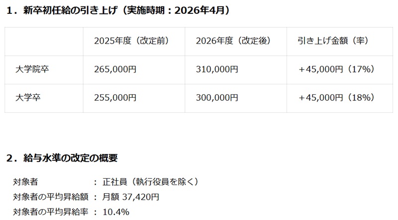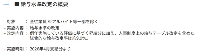 不動産デベロッパーのコスモスイニシア(東京都港区)はアルバイトを除く全従業員の給与を、4月支給分から評価に基づく昇給や給与テーブルの改定を含み約9.9%増額。23年の約7%、24年の約6%、25年の約8.6%を上回り、物価上昇が続くなか従業員が安心して働ける環境を整え、モチベーションを向上させる狙いだ。