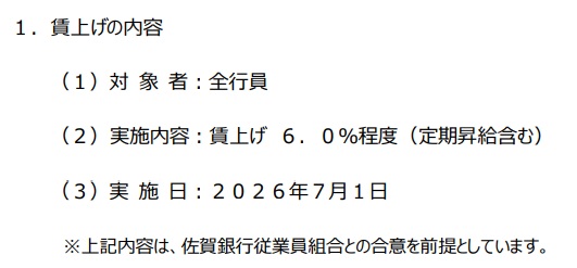 佐賀銀行(佐賀県佐賀市)は7月から、定昇を含み6.0%程度の賃上げを実施。従業員のモチベーションとエンゲージメントの向上を目的に、3年連続の賃上げに踏み切る。