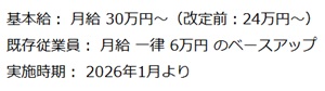 不動産関連事業のオークハウス(東京都豊島区)は1月に給与体系を改定し、3年連続でベアを実施。ベアは23年以降3回目で、全従業員の給与を一律6万円引き上げる。